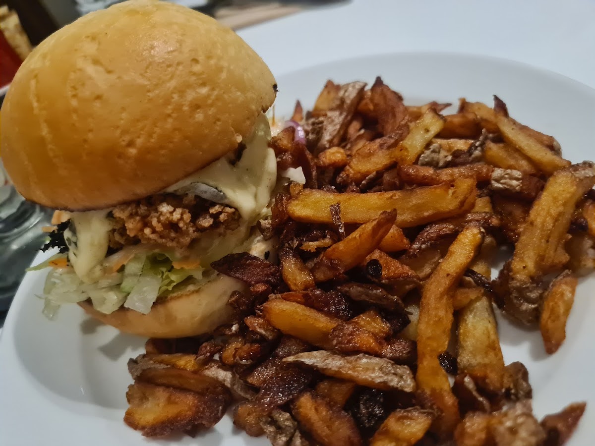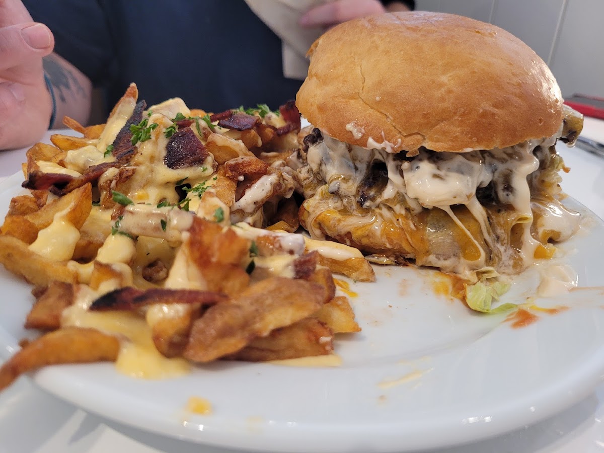 One of the standout items on the menu at Esmé is their Smash Burger with Loaded Fries. This dish is a perfect combination of a perfectly cooked, juicy burger paired with crispy, flavorful fries. The Burger with French Fries Bacon Cheddar is another must-try for burger lovers-succulent bacon and melted cheddar make for a mouthwatering bite. For those looking for something a little different, the Burgeur Chicken Pain Maison is a great option, offering a unique twist with tender chicken in freshly baked bread. And if you're craving something savory, don't miss the Pdt Bacon Cheddar, which brings together the flavors of bacon and cheddar in a delicious potato-based dish.